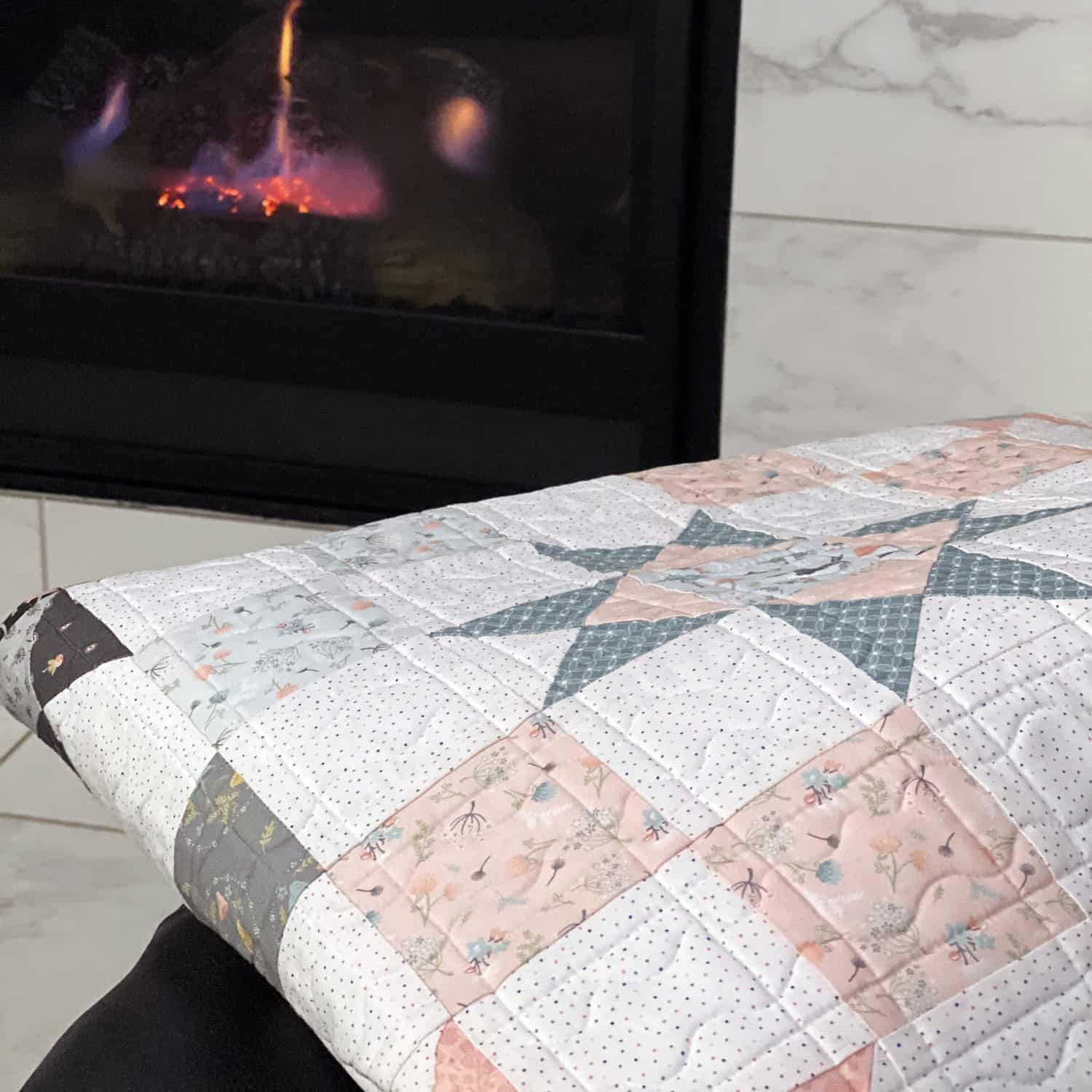 We love the simple wiggly lines of quilting through the middle of the quilt. It gives the overall appearance a modern touch.