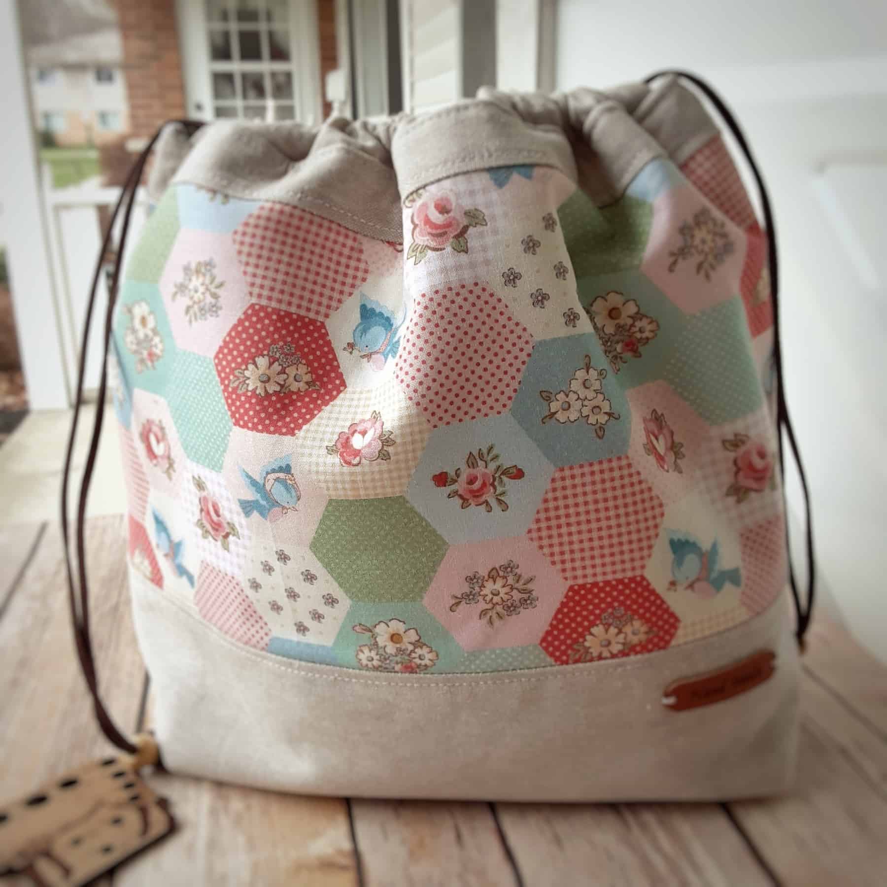 This adorable project bag was made by Debbie at Happy Little Cottage. Be sure to visit her blog here to read all the details.