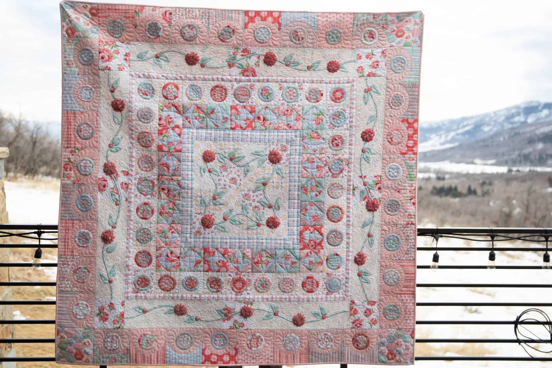 Lisa from Nanny Goat Quilts has designed and created the most gorgeous quilt pattern called Vintage Garden. The pattern “Vintage Garden” features vintage ruched roses and posies…a traditional technique to create dimensional flowers. Lisa will have videos teaching how to do the ruching technique. You can find her patterns here.