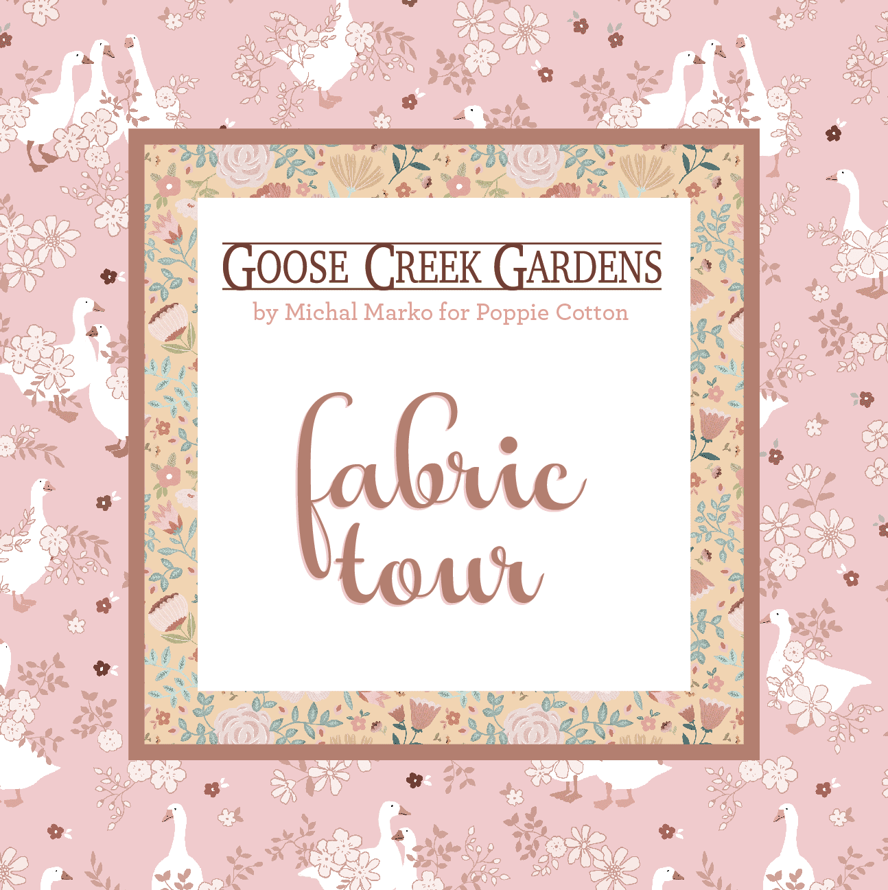 Goose Creek Garden is a sweet mixture of wild flowers, ferns, vines, stripes and of course the cutest geese are the main print in this beautiful fabric collection. The color palette combines soft pinks, buttery yellows, teals and dark mauves. Michal Marko from Israel is the designer of these darling fabrics and available through Poppie Cotton.