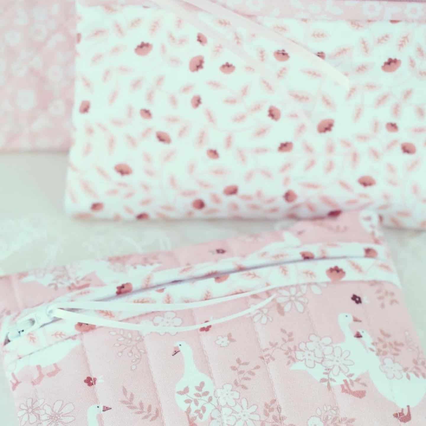 Kristyne used the beautiful pinks in the Goose Creek Garden fabric collection. The sweet pink and white fabric combination makes these zipper pouches so sweet. They are the perfect gift or better yet… gift to self:)