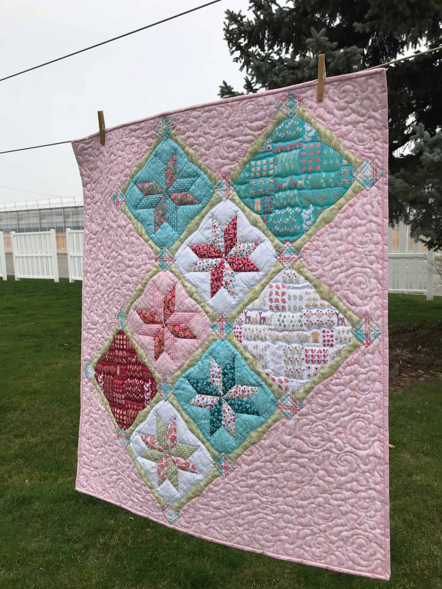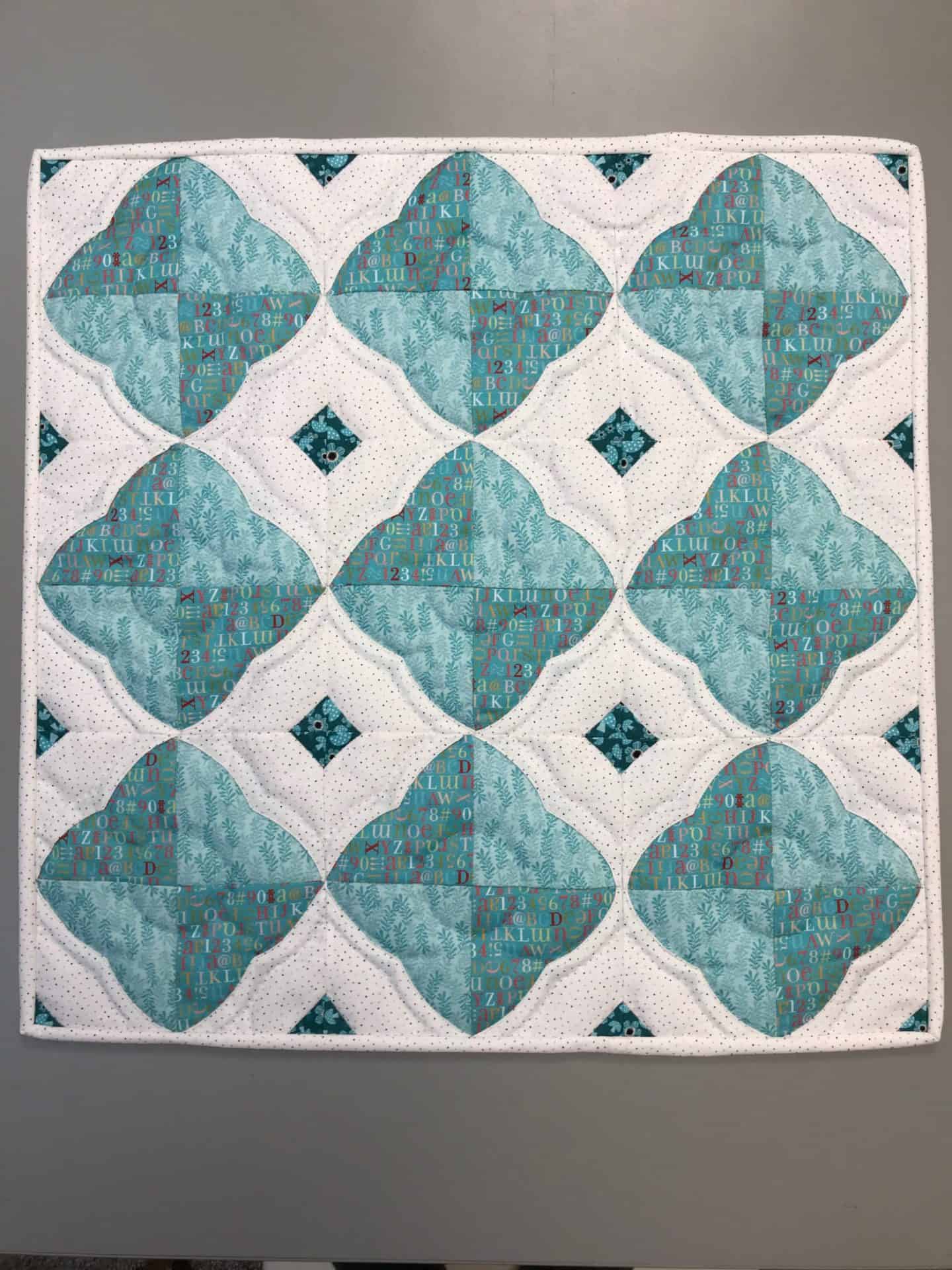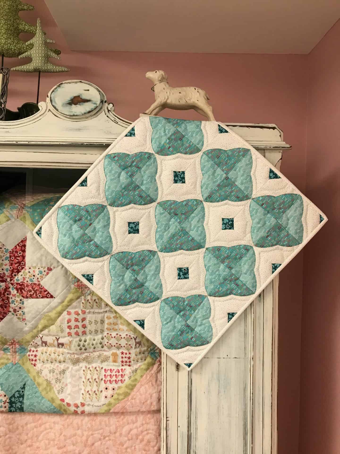 We are loving all the teals and blues… and how they coordinate so well together. This sweet mini quilt is a beautiful design for these colors to play together.