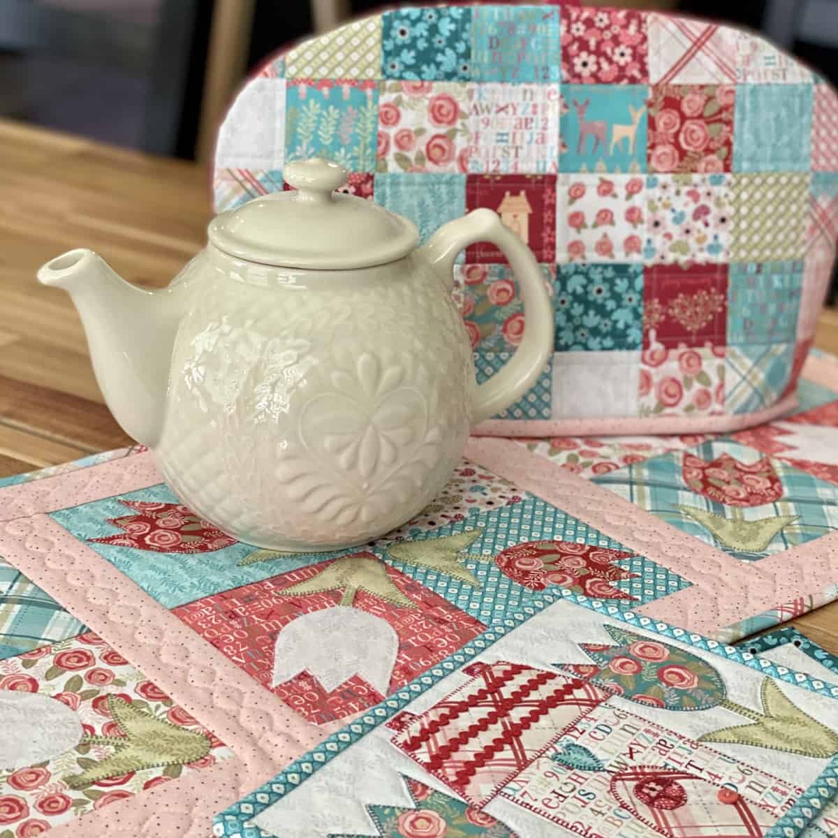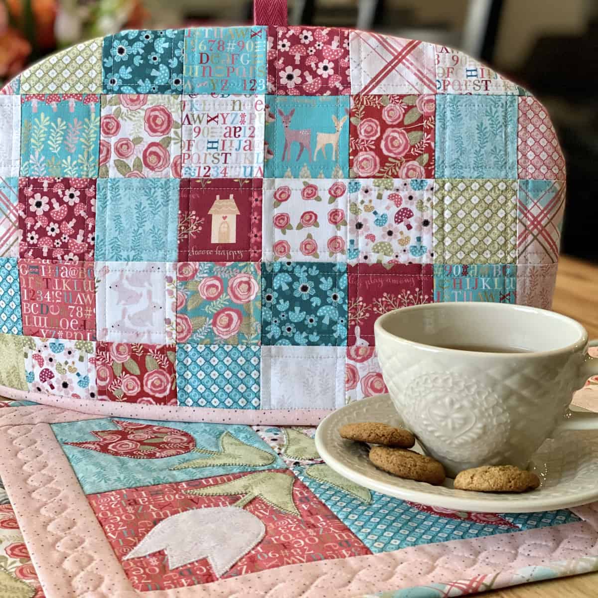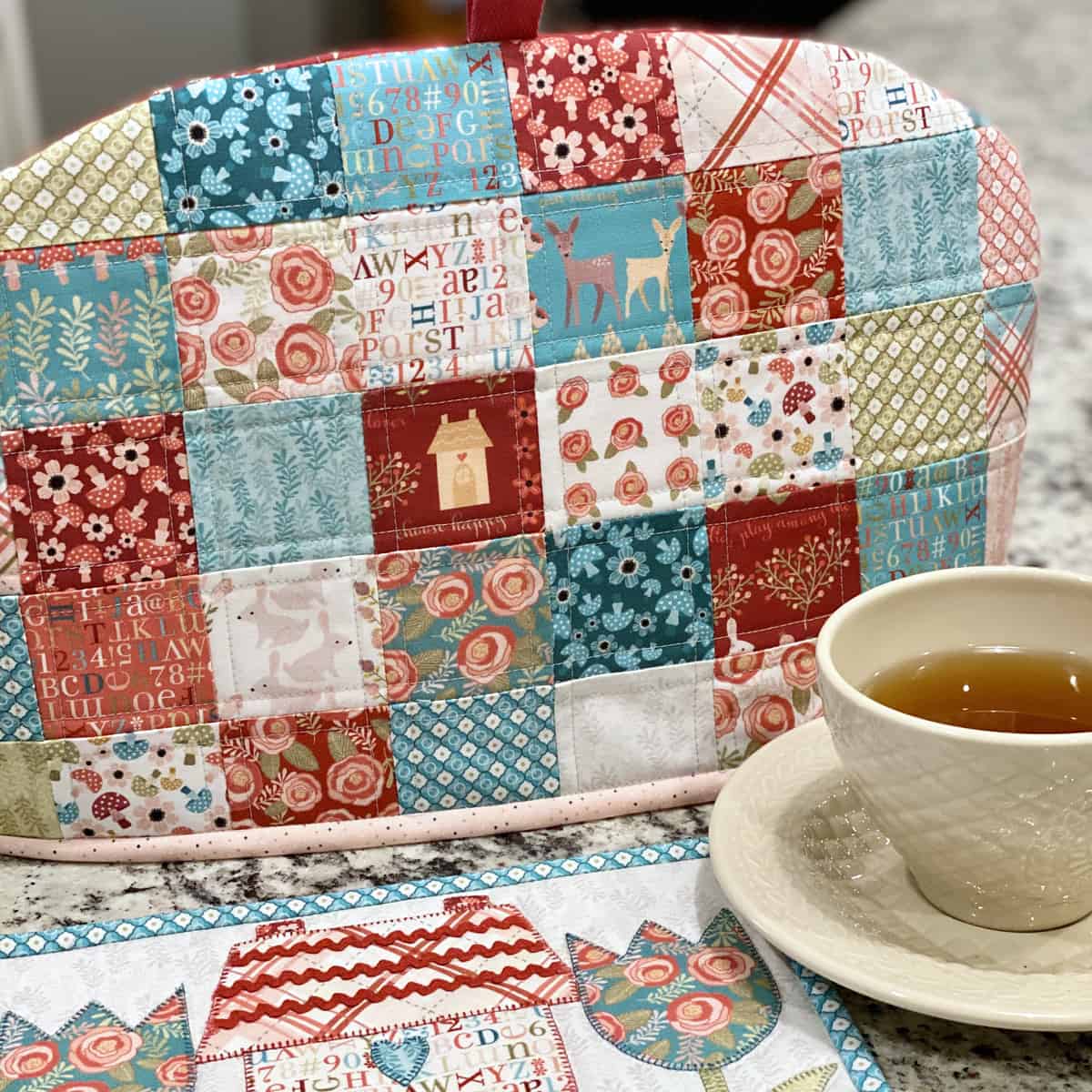 The “Cloud Nine Tea Cozy” is so gorgeous with all it’s 2 1/2″ fussy cut squares. We love it!