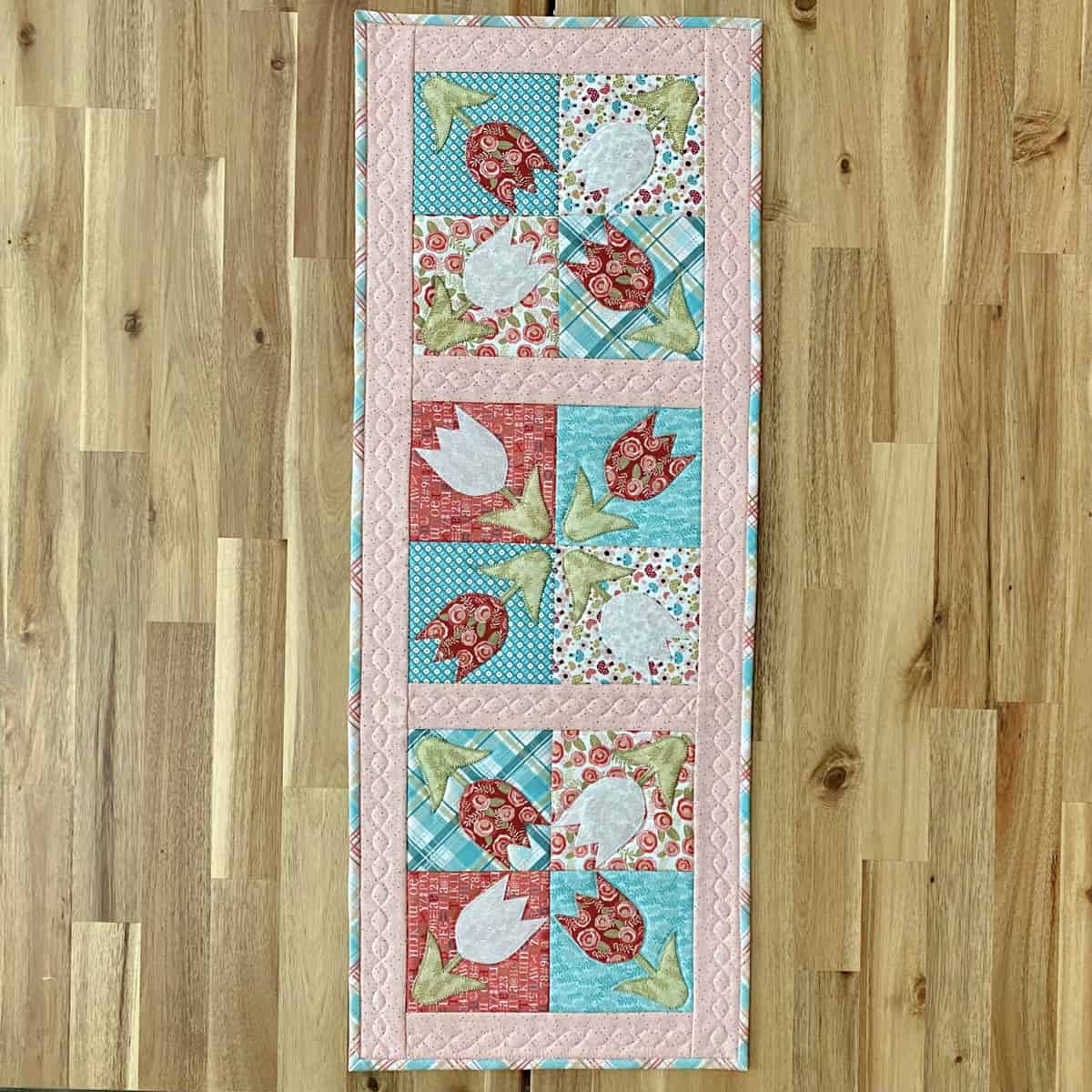 Loving this clever rendition called “Tulip Table Runner.”