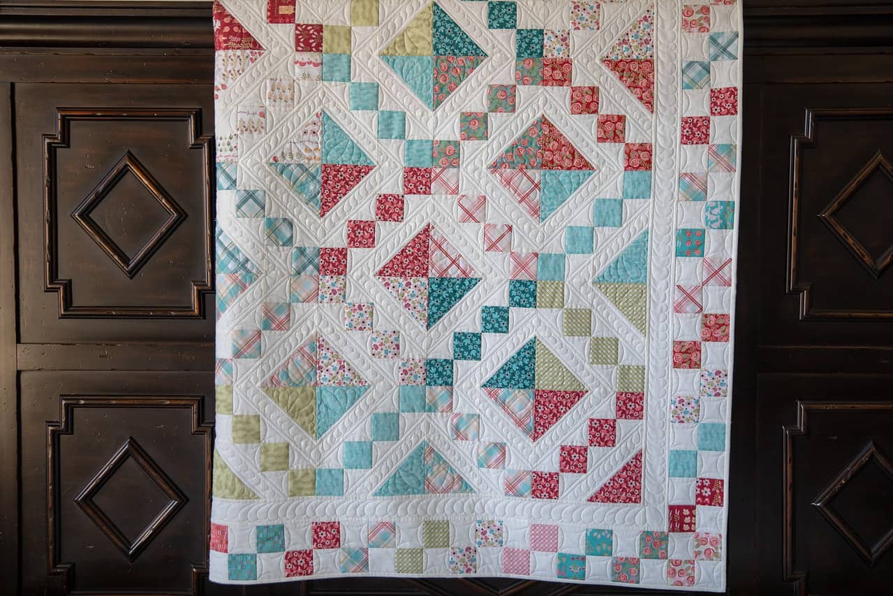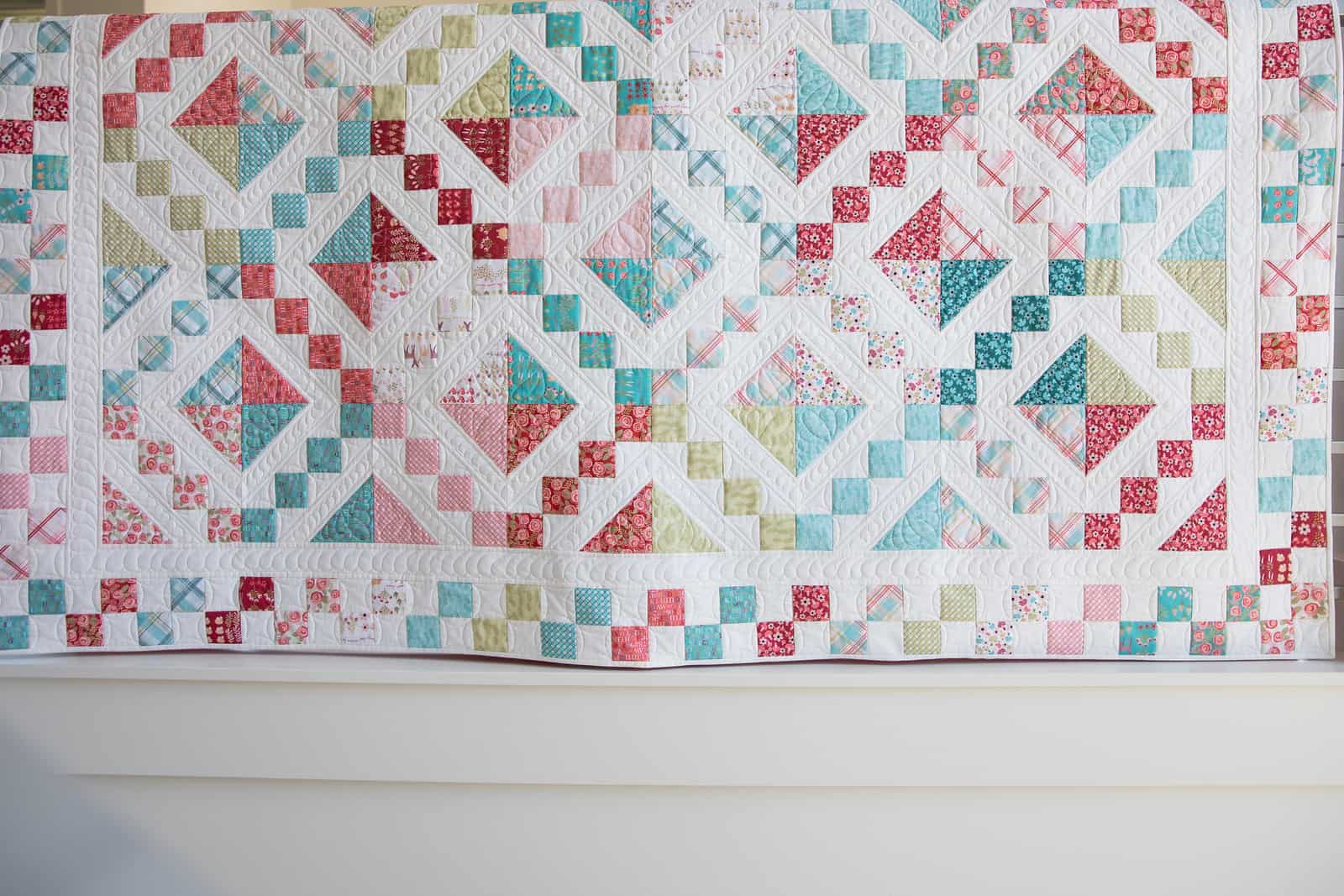 This simple patchwork pattern brings a sweetness to the Kaisley Rose fabric collection. We just love how the design, the quilting, the contrast of colors completes this beauty.