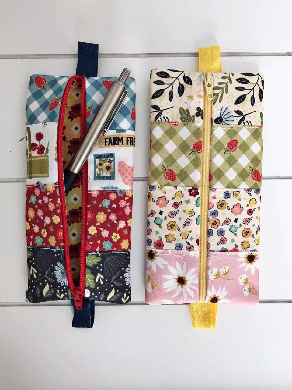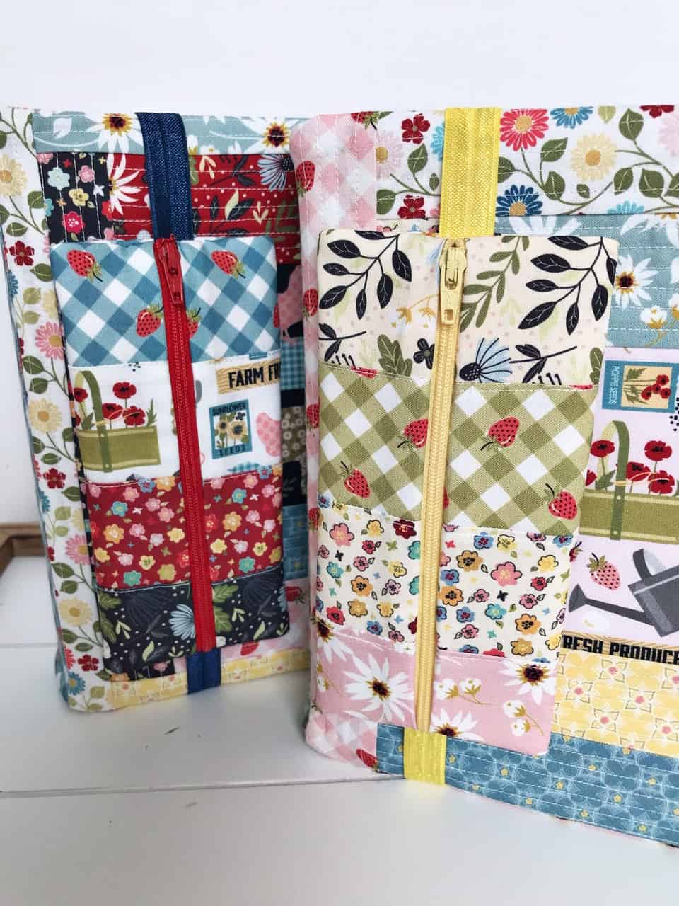 Dori has made the most darling quilted book covers and elastic pencil cases. We love all the quilting details.