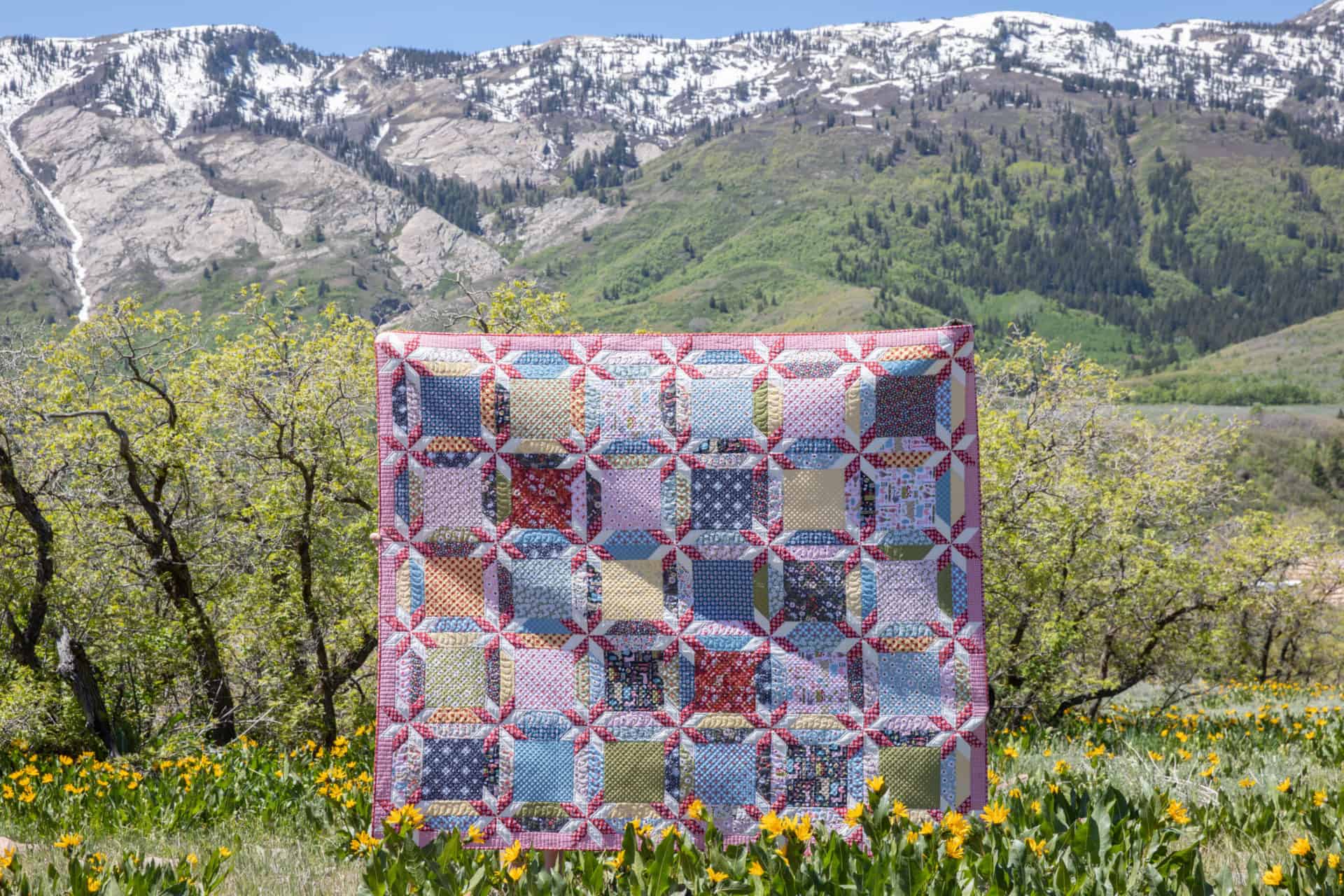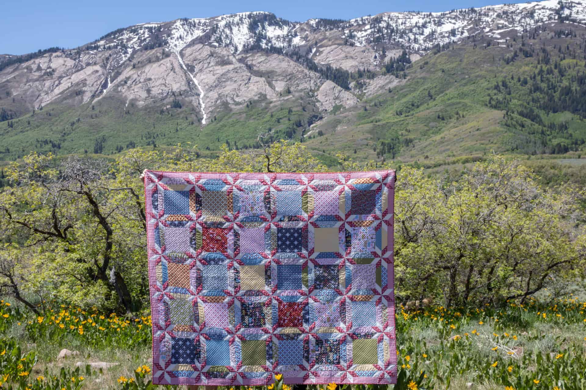 This gorgeous picnic quilt is called Diamonds in the Corner and is available in pattern form from Nanny Goat Quilts.