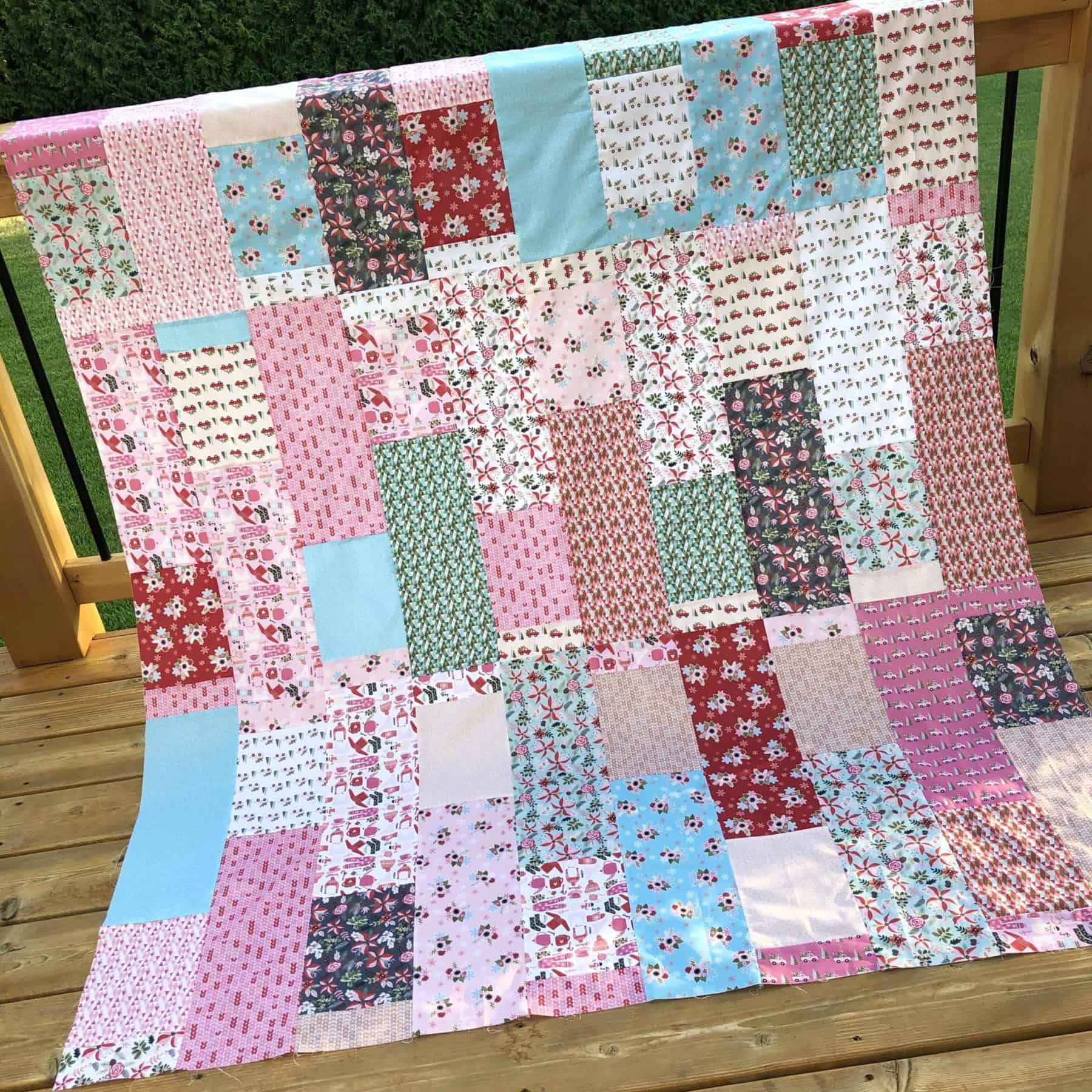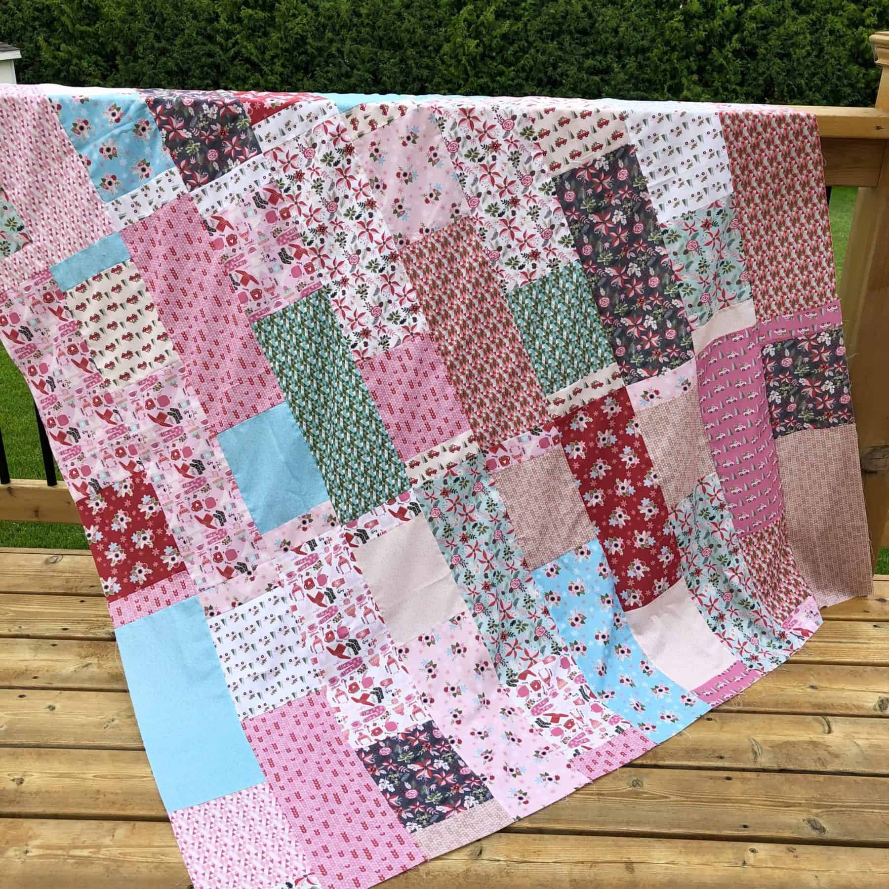 This quilt uses 28 fat quarters and is so simple to cut, piece and sew together. You can find all the cute prints from Snuggle Up Buttercup and Country Confetti here.